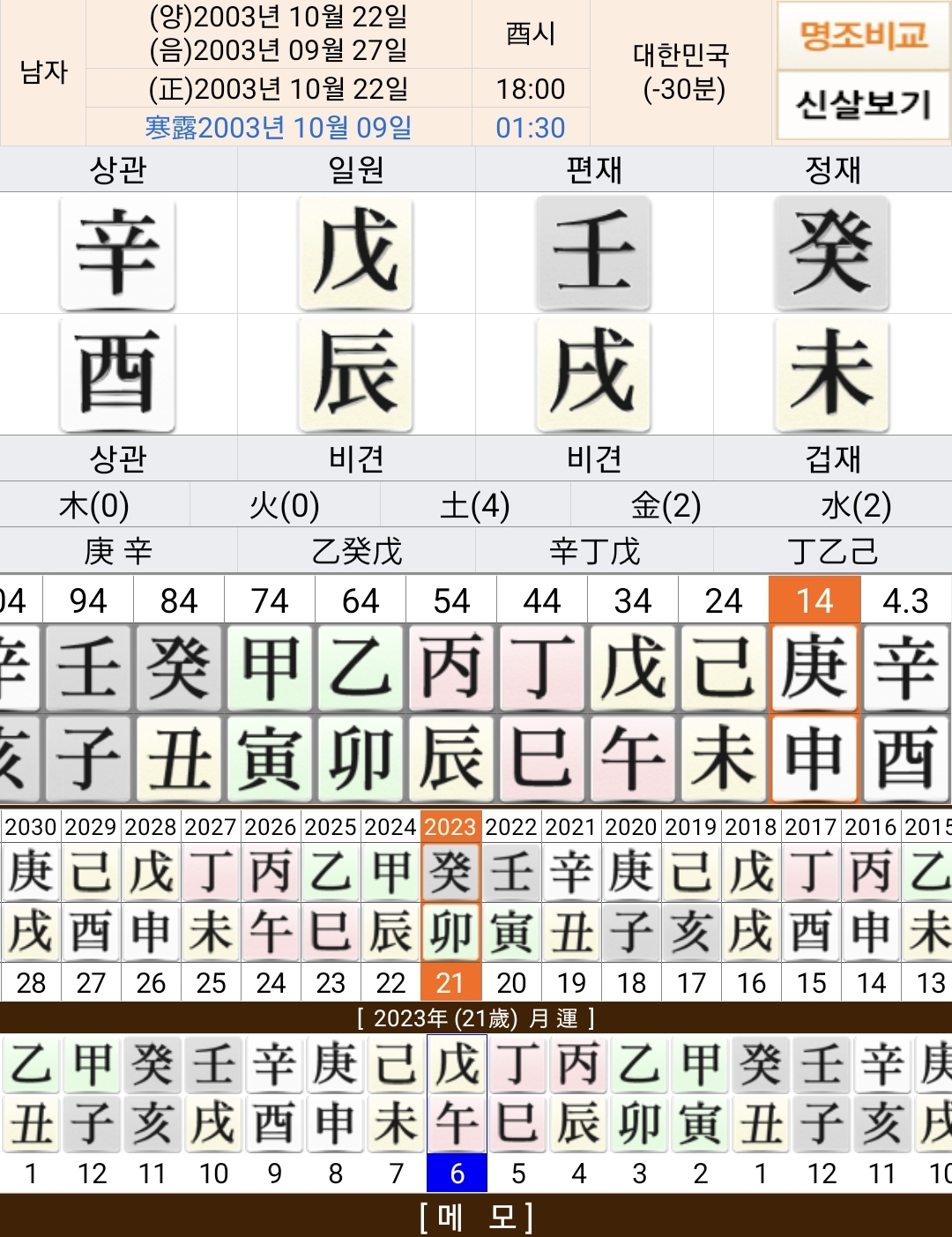 형과 마찬가지로 파와 해도 단식 판단을 할 때 경계해야 하는 것으로, 충은 정확도가 있어 단식에 적용도가 높은 편이나 형, 파, 해는 잘 맞는 경우가 그리 많지 않습니다.
