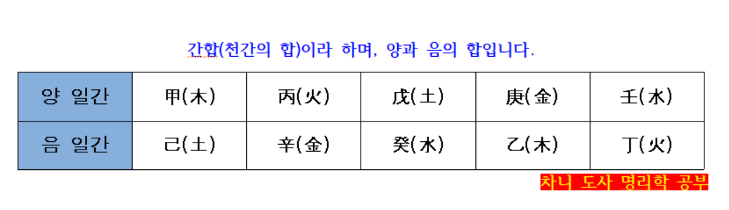 천간의 합을 알아야 궁합을 보는데 첫번째 관문을 확인 할 수 있습니다.