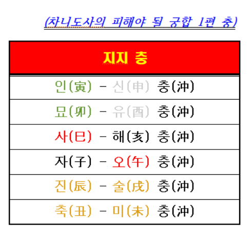 자 그렇다면 이제 피해야 될 궁합 1편 (충)에 대하여 설명하겠습니다.