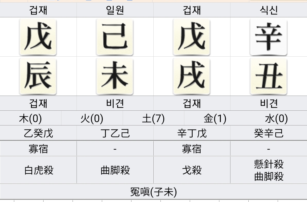 화개살이 지지에 4개가 각각 모두 구성되어 있으면 사고 격 (四庫格) 이라 하여 대길합니다.