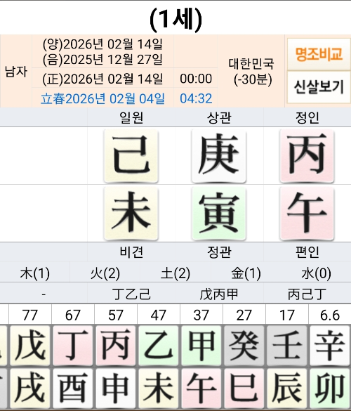 己未일주가 되며, 격국으로는 정인격이 됩니다.