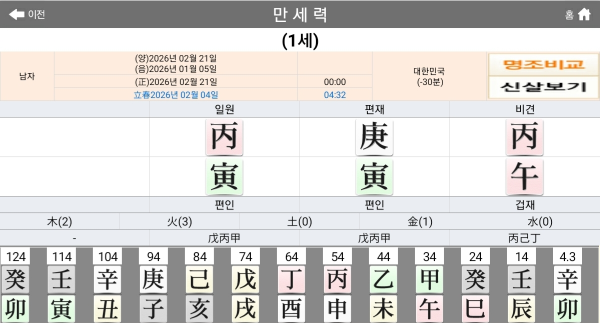 2026년 2월 21일 丙寅 일에 출산한 사주 택일을 정리하겠습니다.
